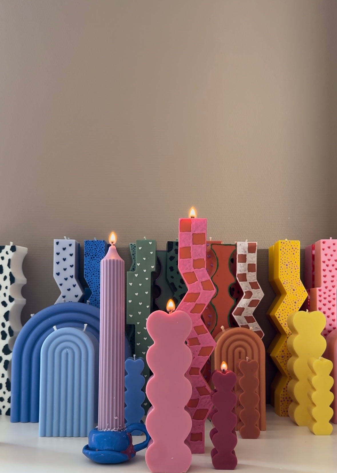 Handmade candles in all the colors of the rainbow - created to warm your home and heart.
