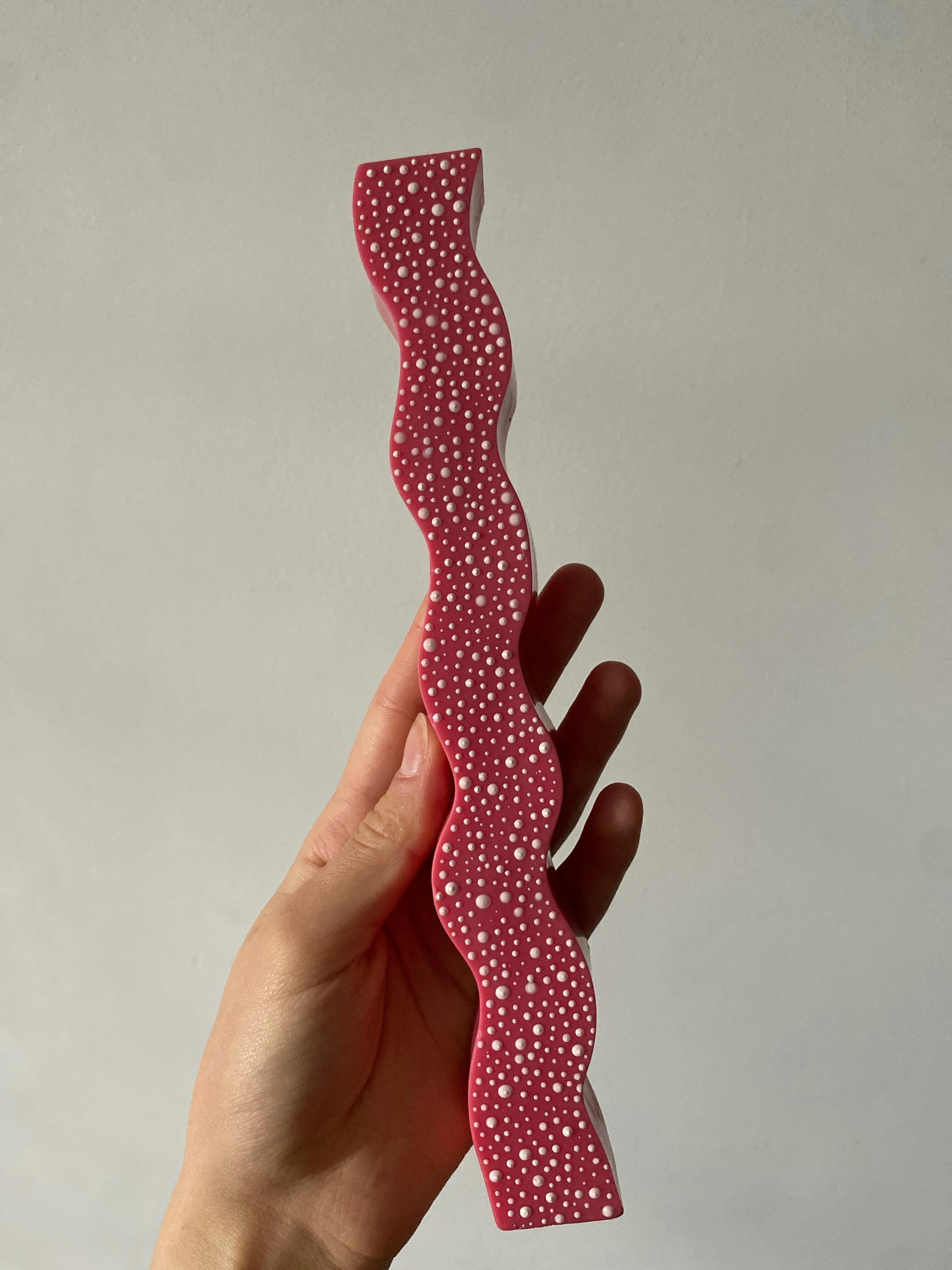 A dance of curves and dotted delight. Curve Dot flows with playful elegance – a candle that carries both movement and stillness. Let it light up your mood.