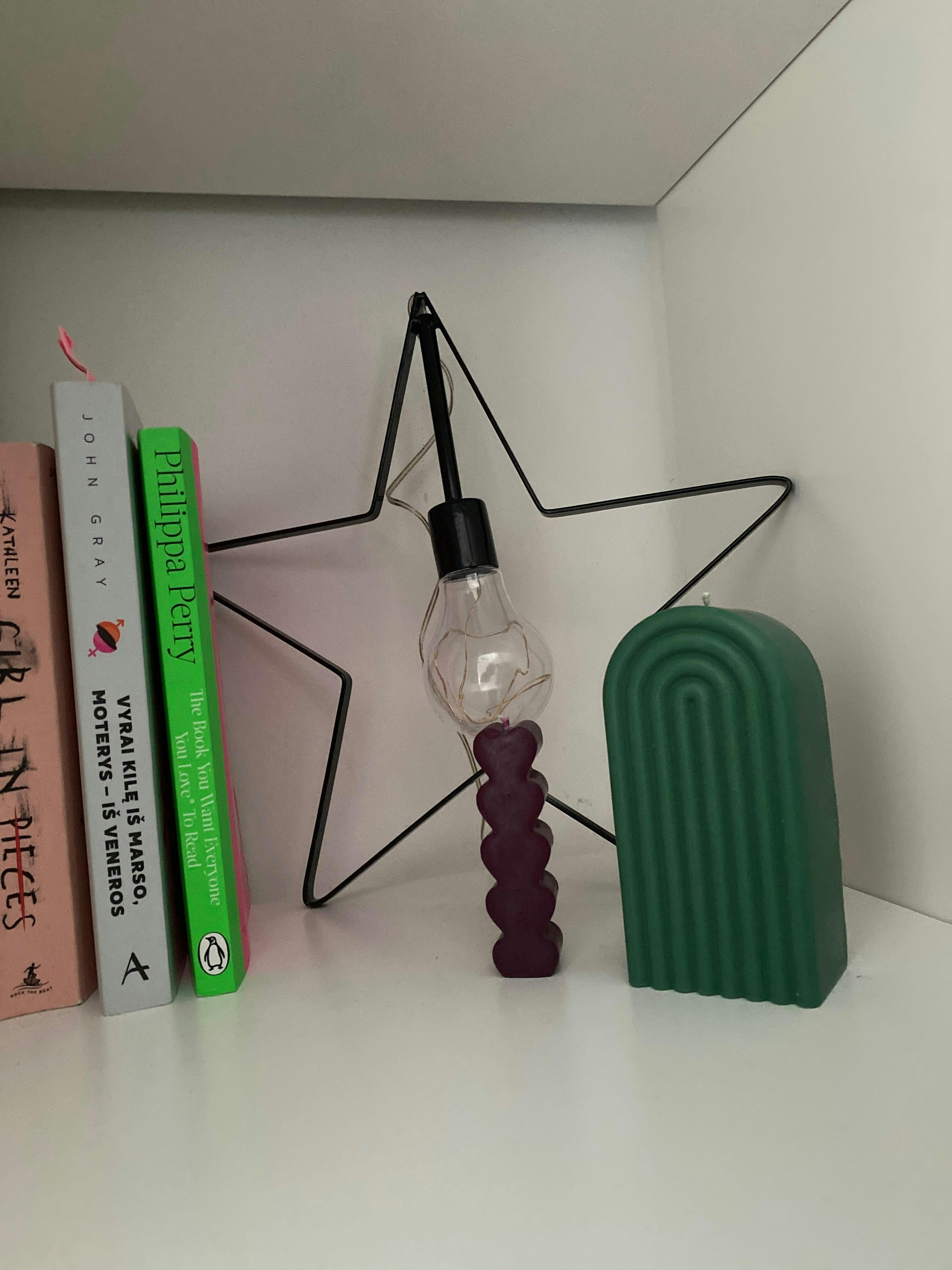 Žvakė atrodo dar gražiau realybėje nei nuotraukose! Rinkausi tarp baltos ir žalios, bet galiausiai nusprendžiau imti žalią, nes ji labiau išsiskiria ir priduoda daugiau spalvos. Dabar ji stovi prie love bloom mini žvakės – abi kartu atrodo labai estetiškai ir papildo viena kitą. 💖