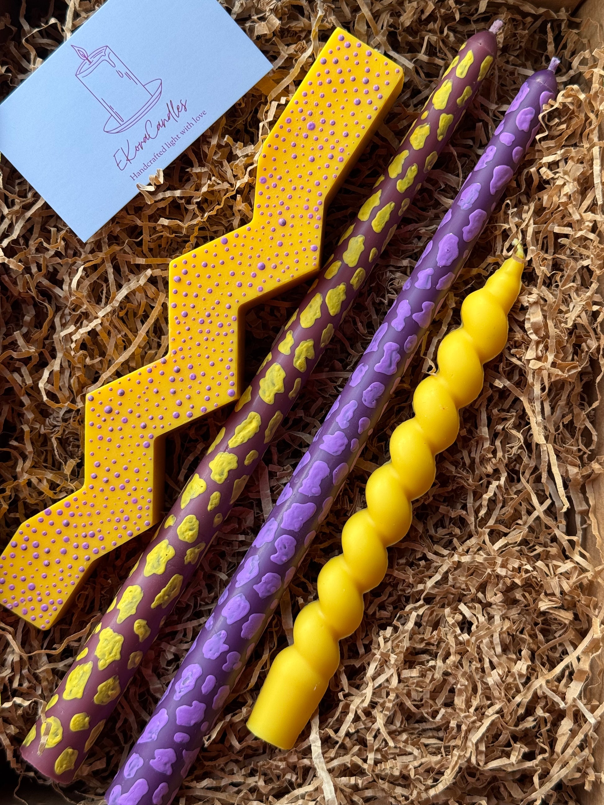 Džiaugsmingas, bet kartu svajingas rinkinys geltonos ir violetinės spalvų.