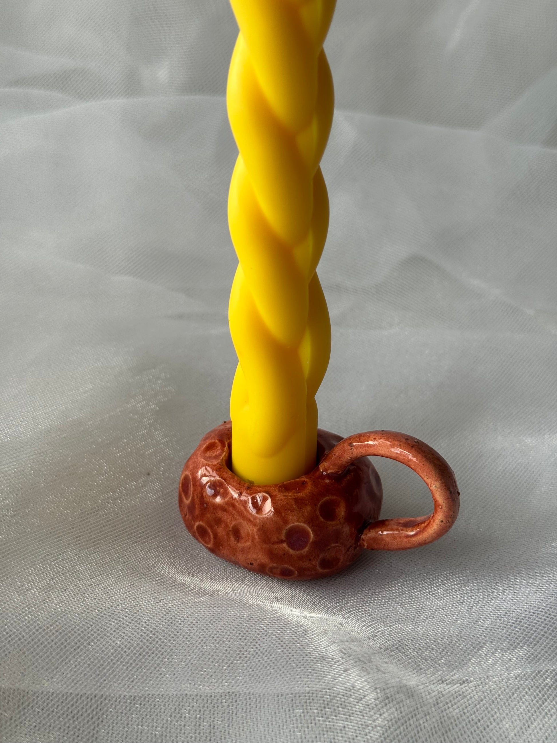 Jauki, rustic stiliaus vario spalvos žvakidė – mažas keraminis apkabinimas jūsų Soft Spira žvakei.