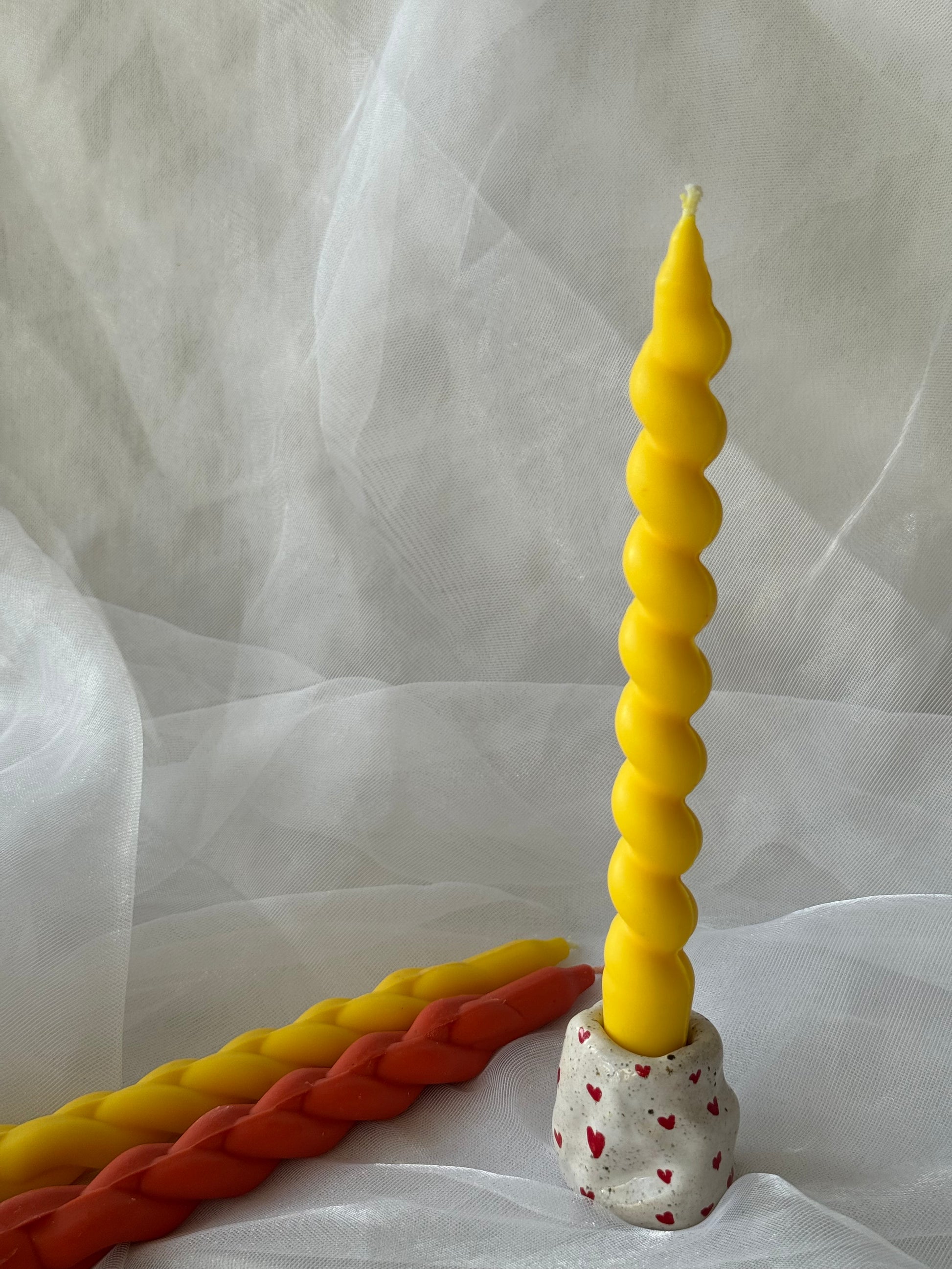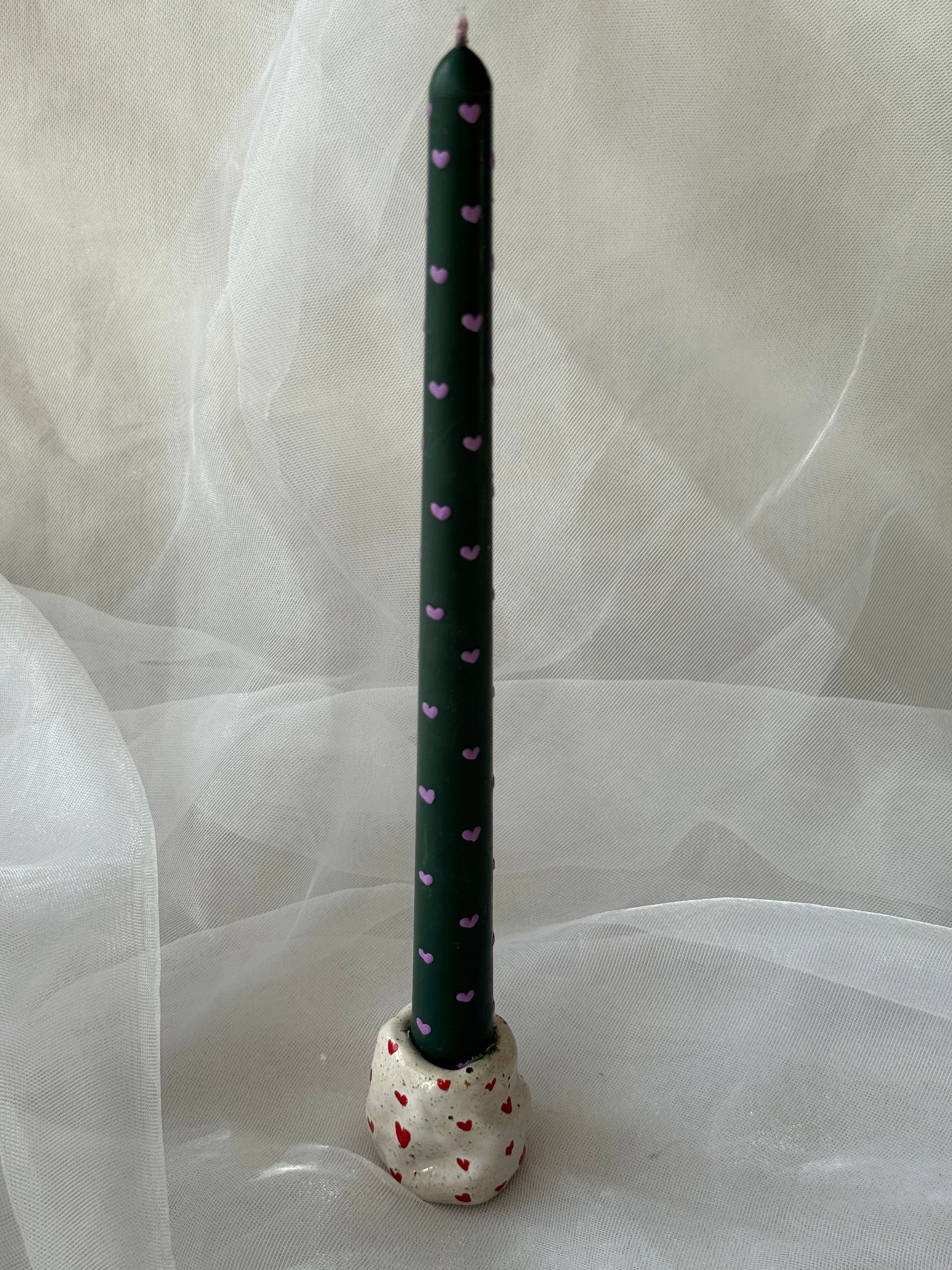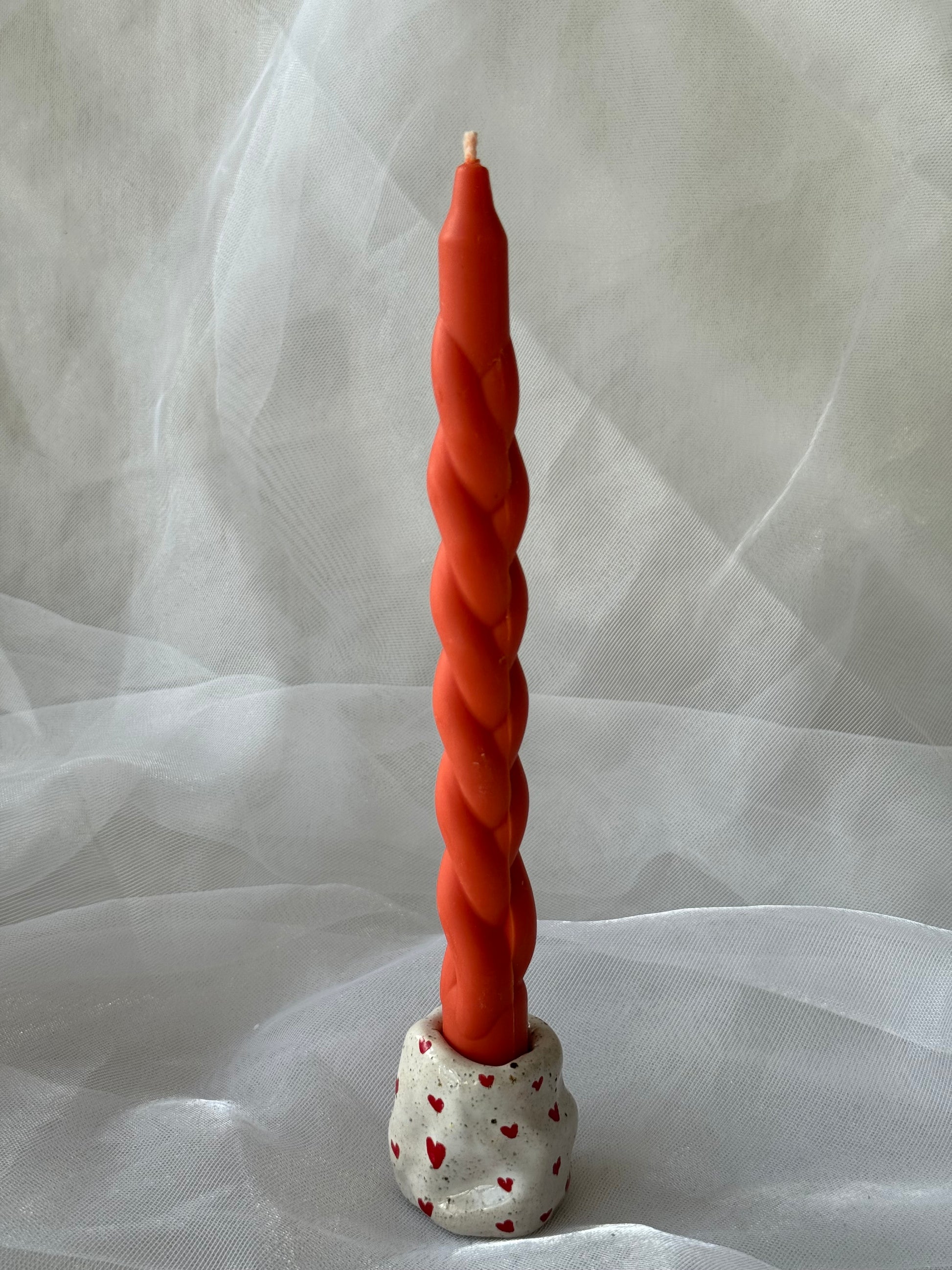 Nusėta mažomis raudonomis širdelėmis – sukurta su meile jūsų Soft Spiraar Slim Glow žvakėms.