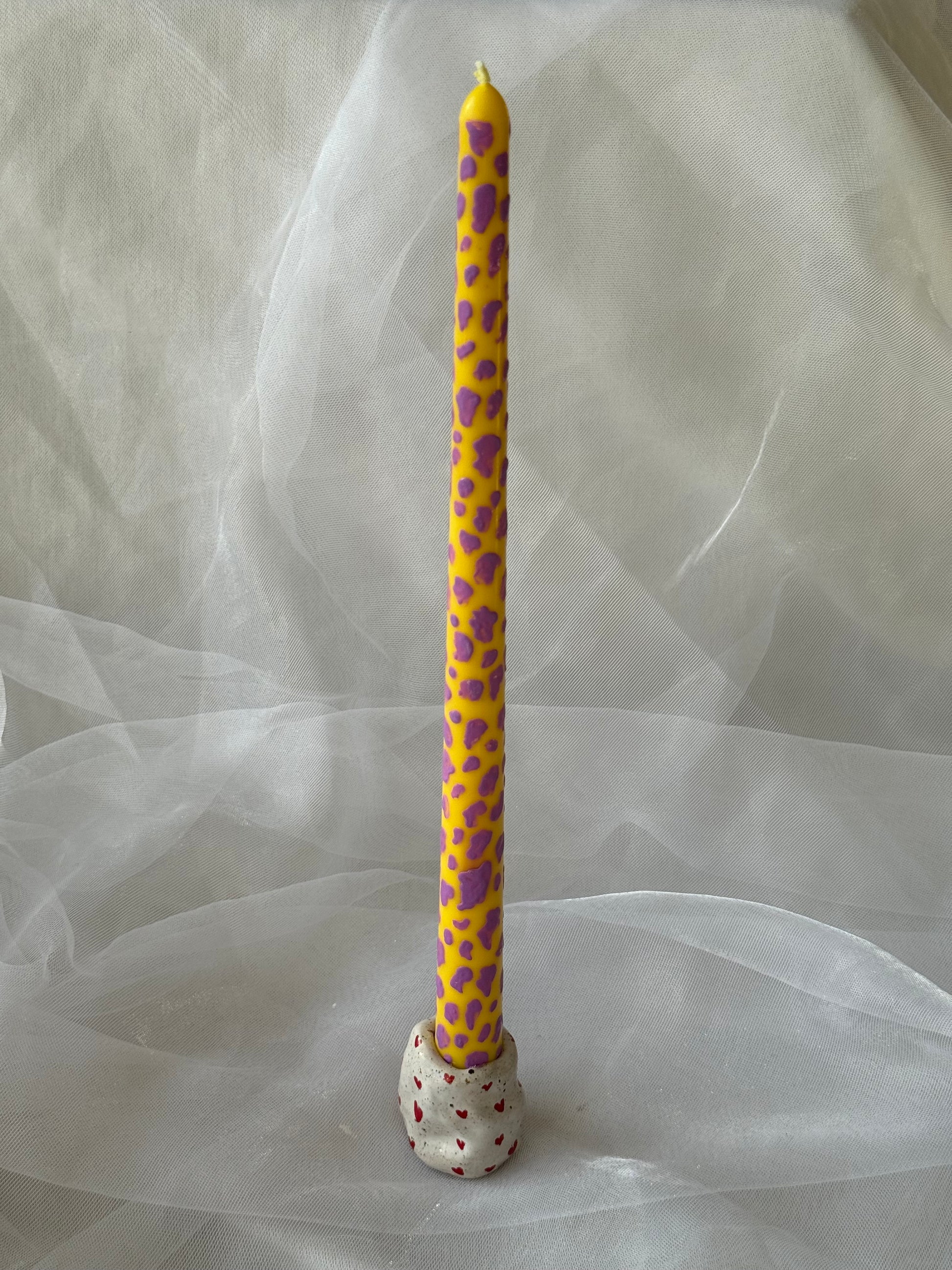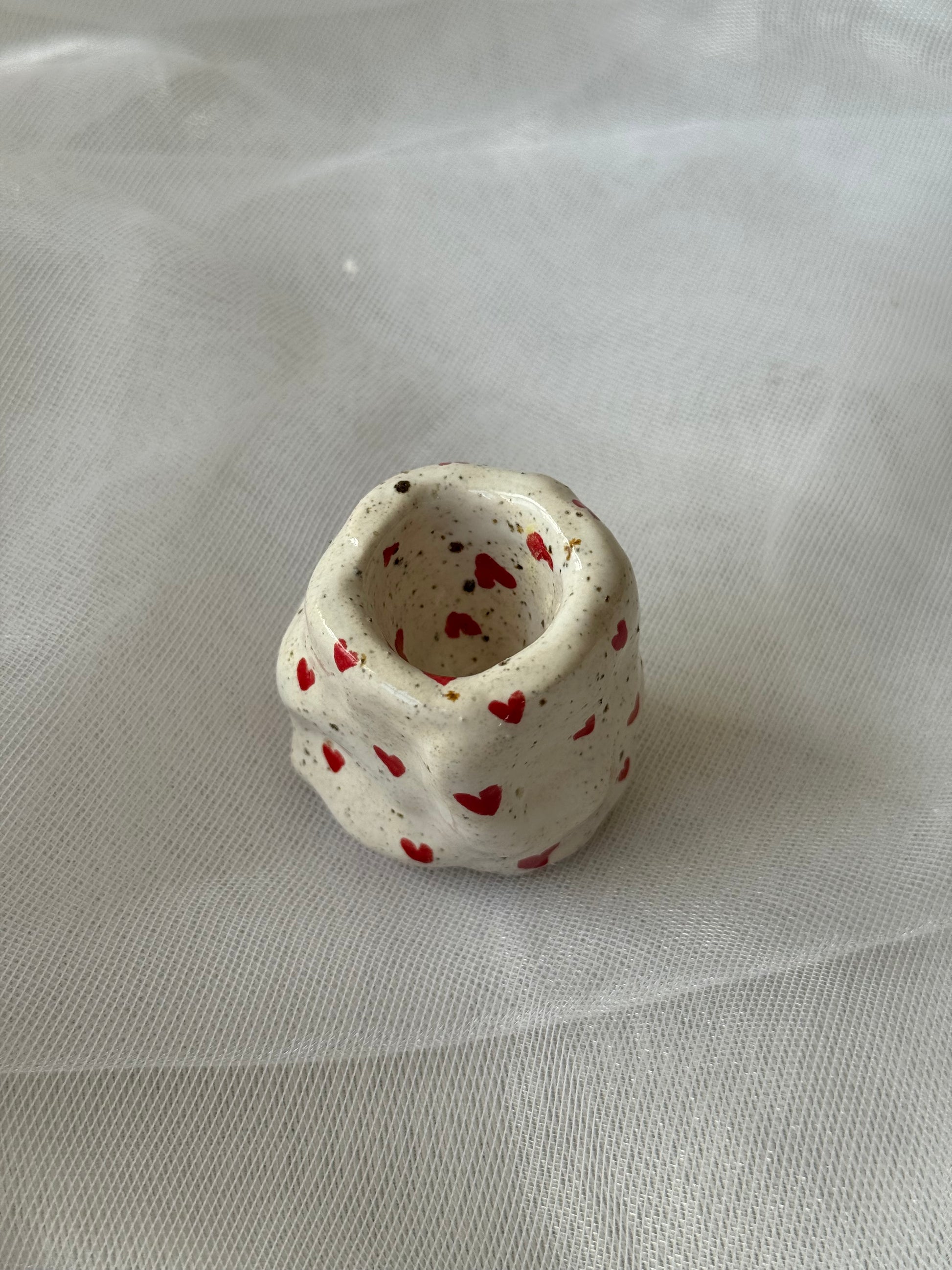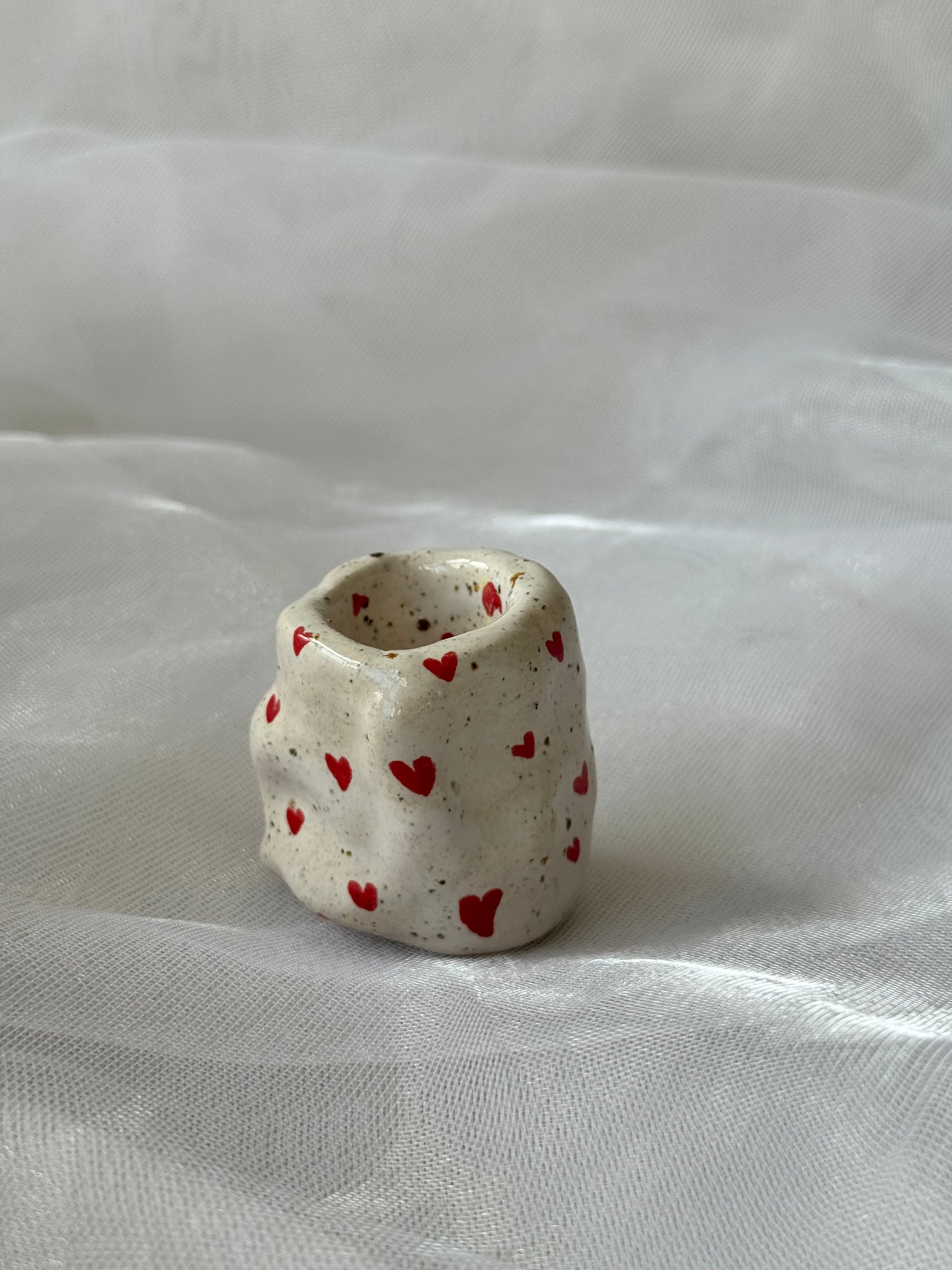 Nusėta mažomis raudonomis širdelėmis – sukurta su meile jūsų Soft Spiraar Slim Glow žvakėms.