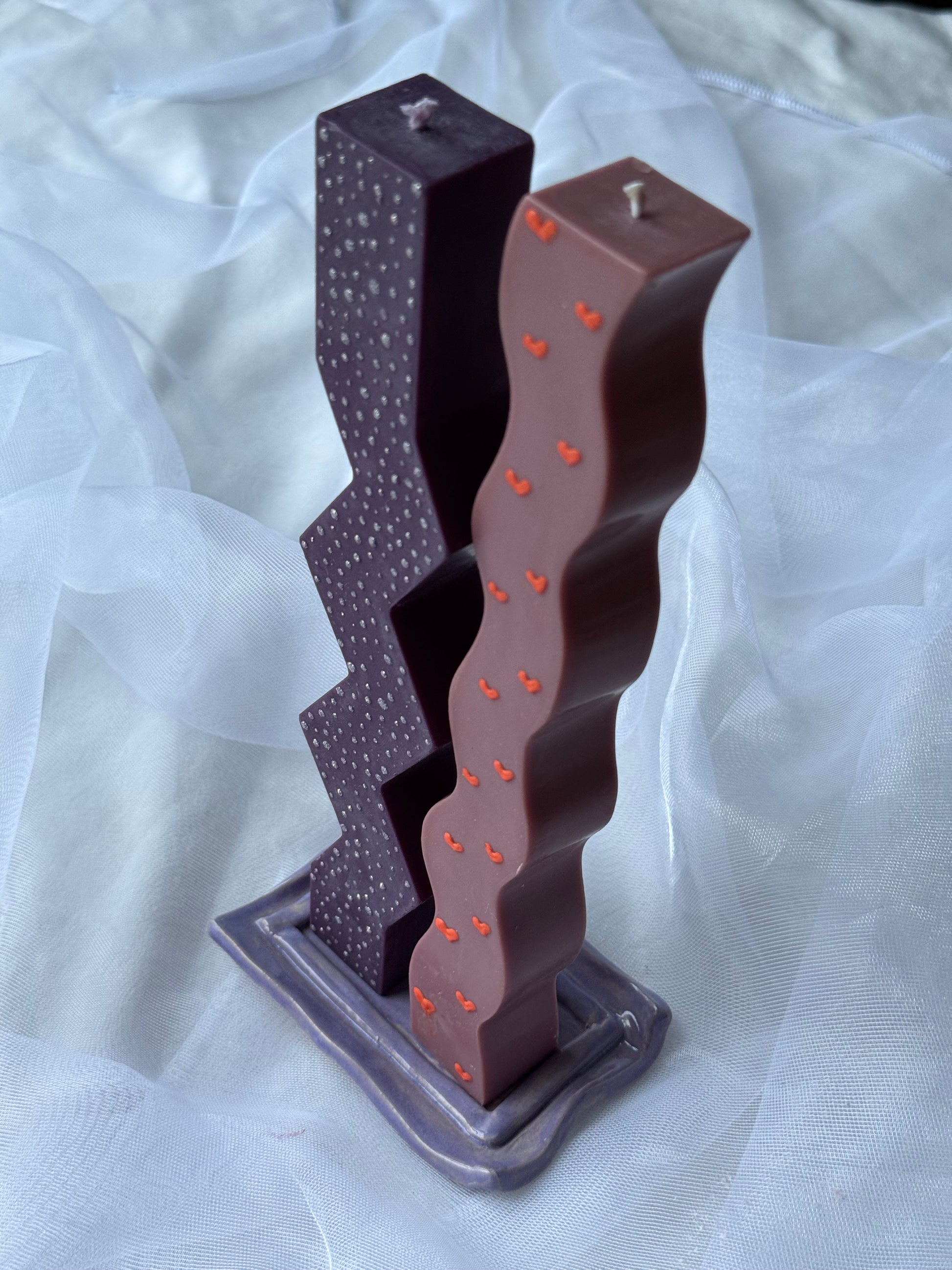 Keraminis padėkliukas švelniai violetiniu atspalviu. Unikalus, išraiškingos rėmelio formos.